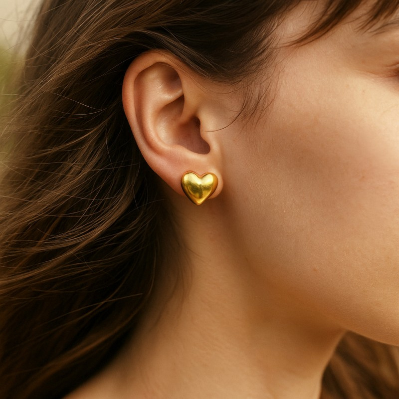 Kolczyki ze stali szlachetnej platerowane 14k złotem, dwustronne serca KST3412