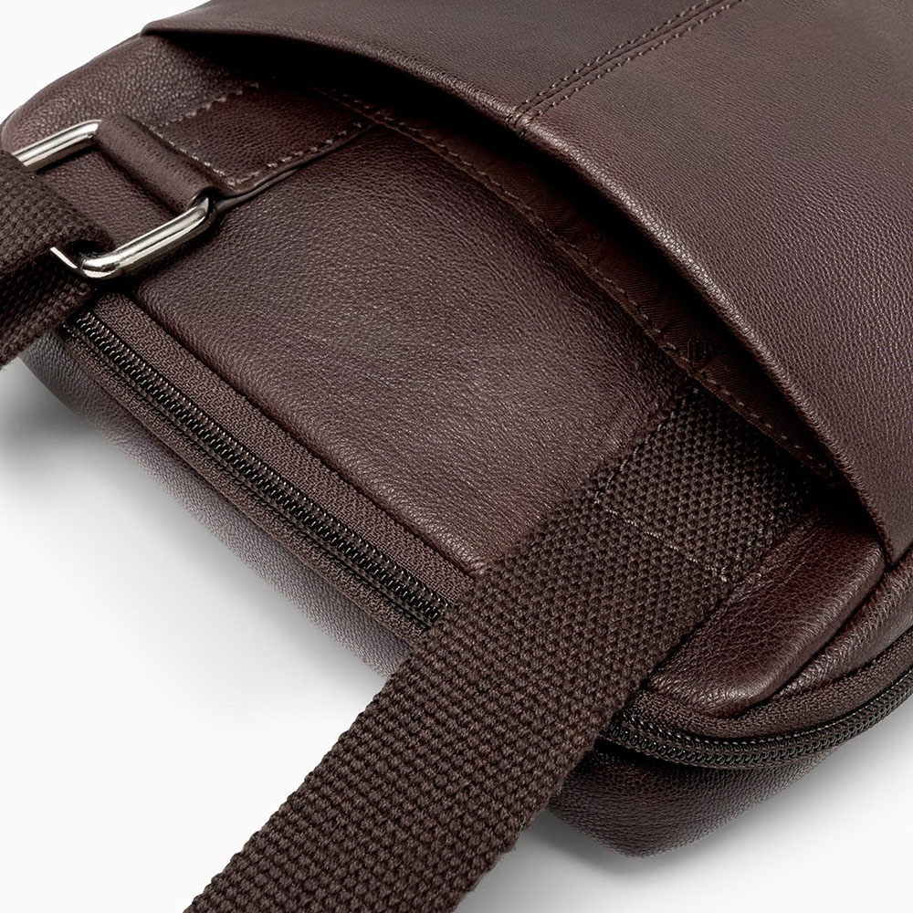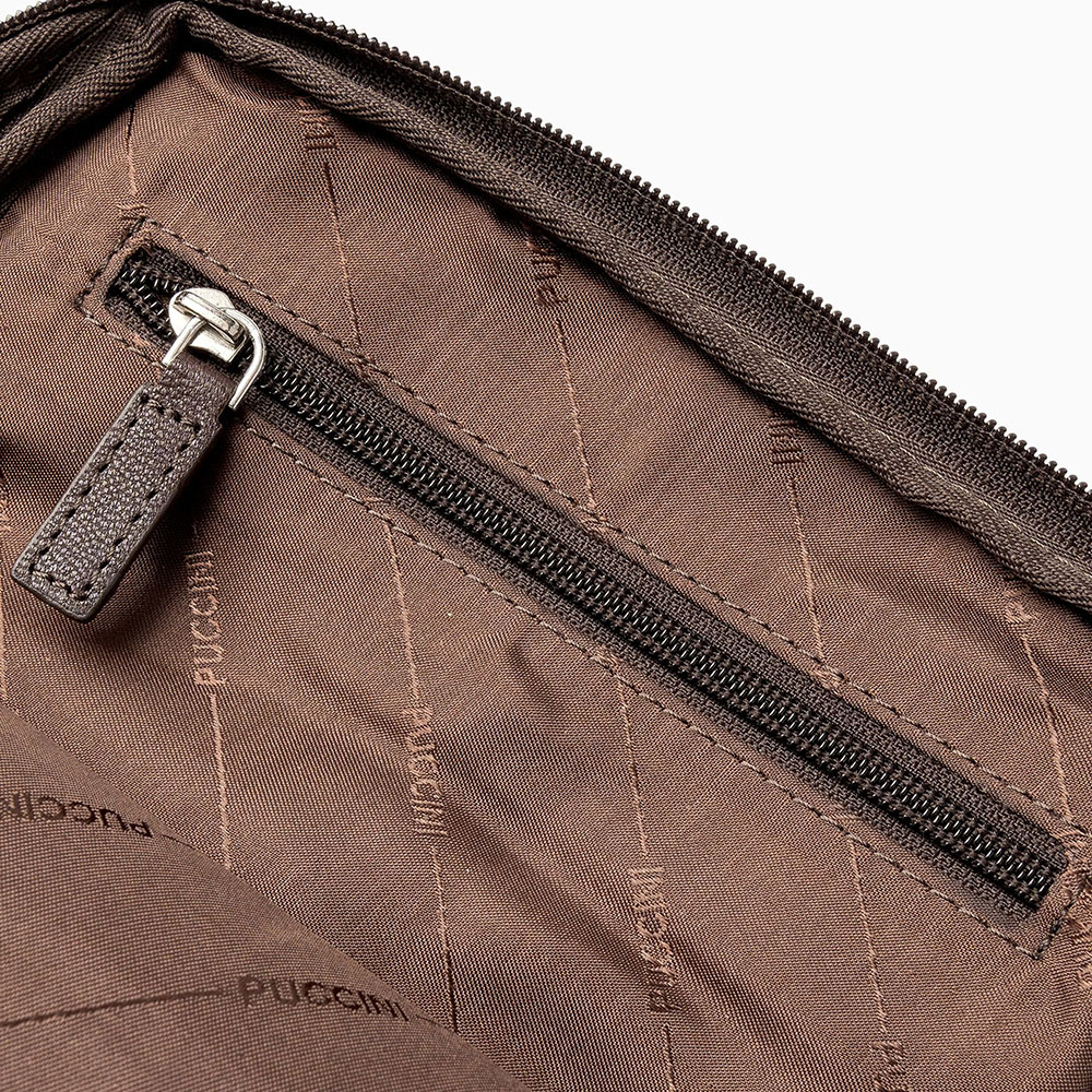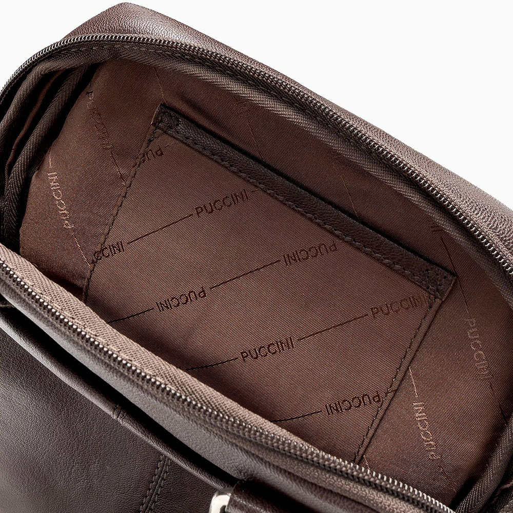 Model oferuje dobrze zorganizowane wnętrze, które z łatwością pomieści wszystkie niezbędne drobiazgi. Liczne kieszenie wewnętrzne i zewnętrzne ułatwiają utrzymanie porządku, a regulowany pasek zapewnia komfort noszenia dopasowany do indywidualnych preferencji. Elegancka, logowana podszewka oraz srebrne elementy metalowe podkreślają wysoką jakość wykonania.