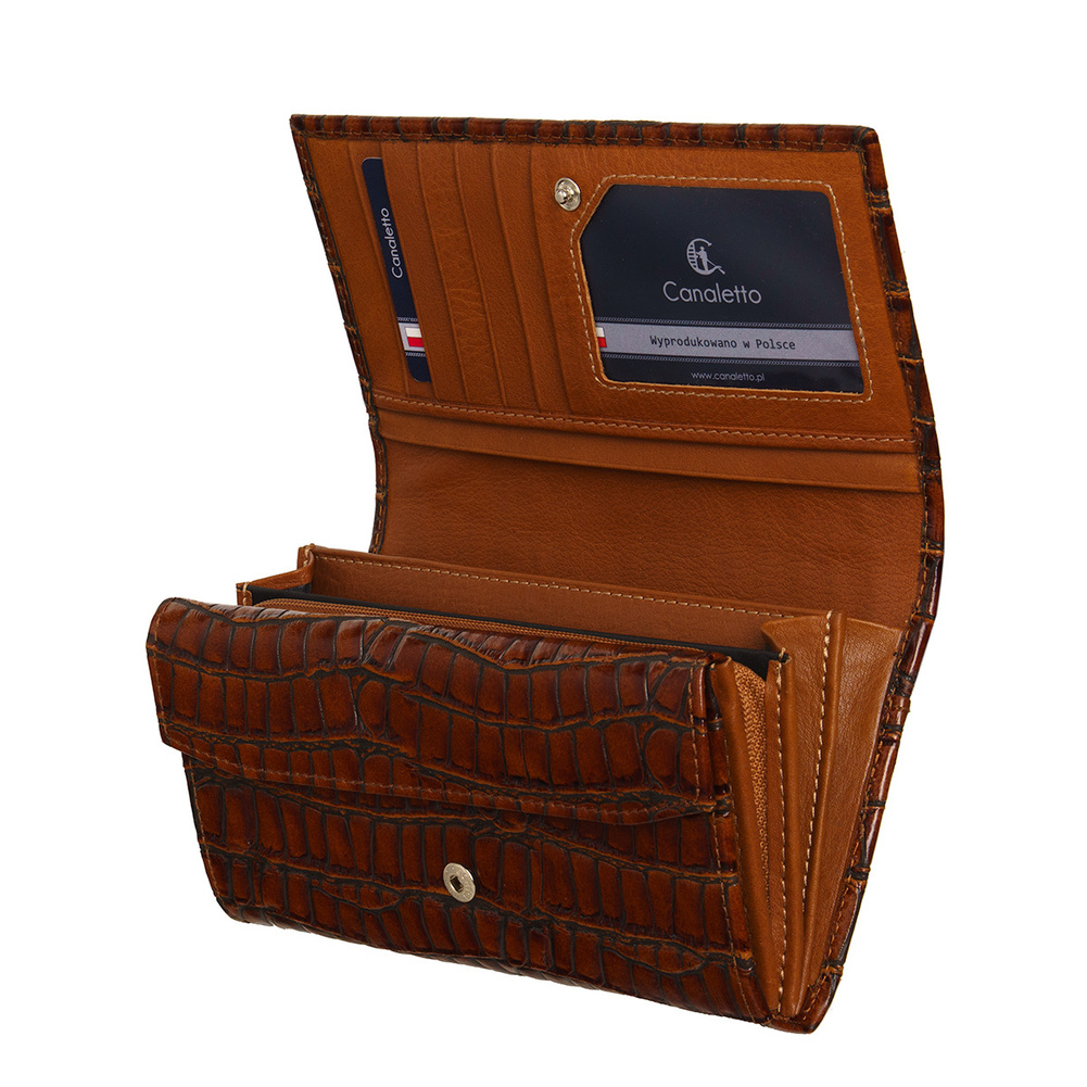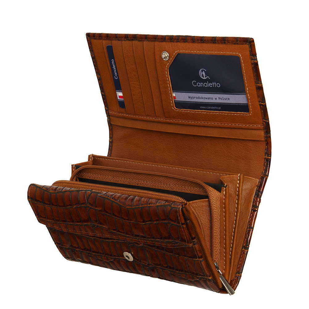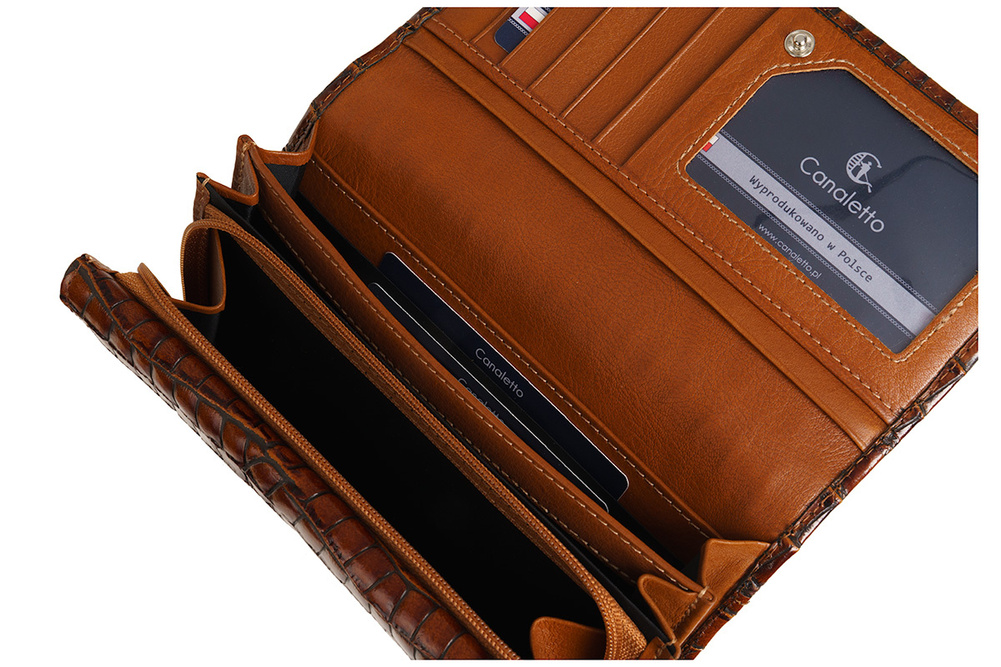 Duży portfel skórzany Canaletto ze wzorem krokodyla to doskonały wybór dla kobiet, które cenią sobie klasę, trwałość oraz ochronę danych dzięki technologii RFID.
