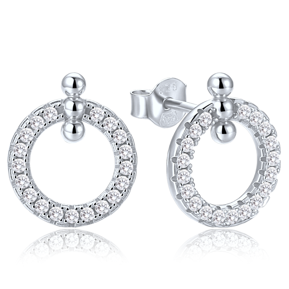 Eleganckie kolczyki MINET ze srebra Ag 925/1000 w kształcie kółek z cyrkonią mają rodowaną powierzchnię, która utrzymuje kolor i połysk.