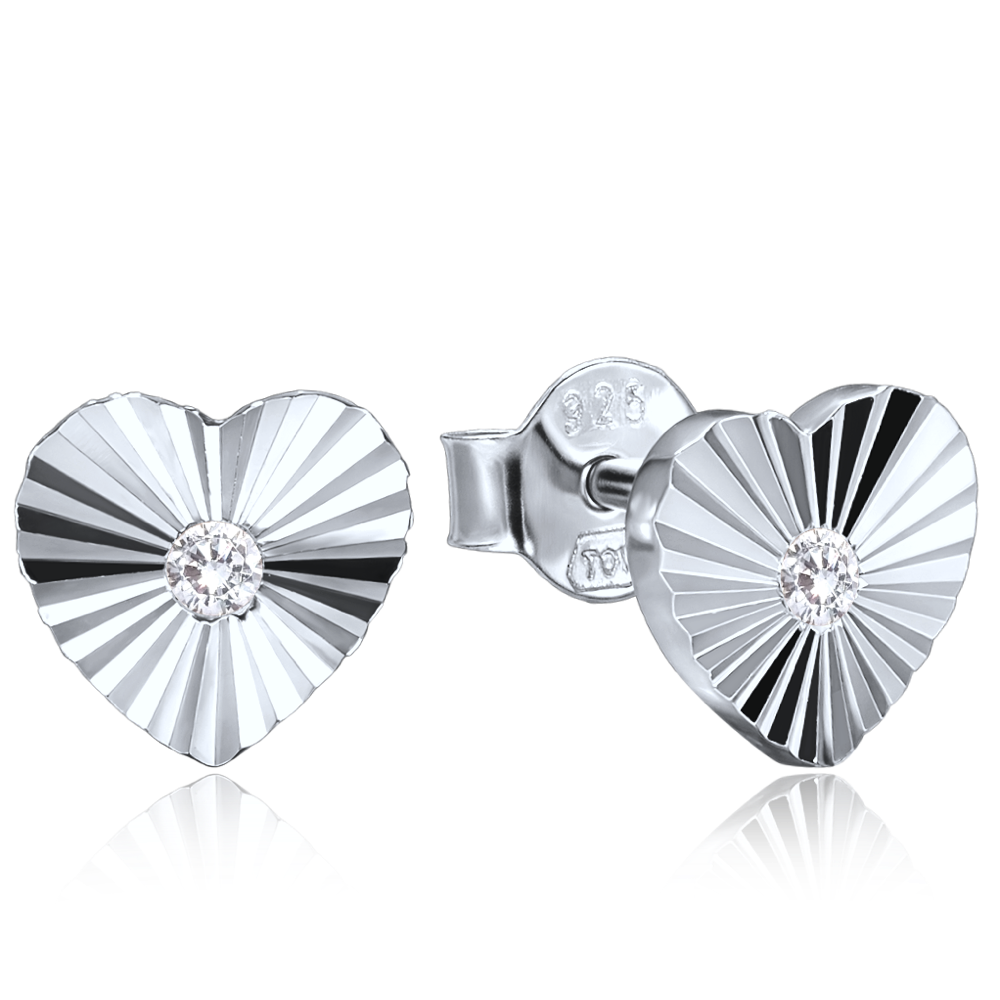 Delikatne srebrne kolczyki MINET ze srebra Ag 925/1000 z motywem serduszka i cyrkonią mają rodowaną powierzchnię, która utrzymuje kolor i połysk.