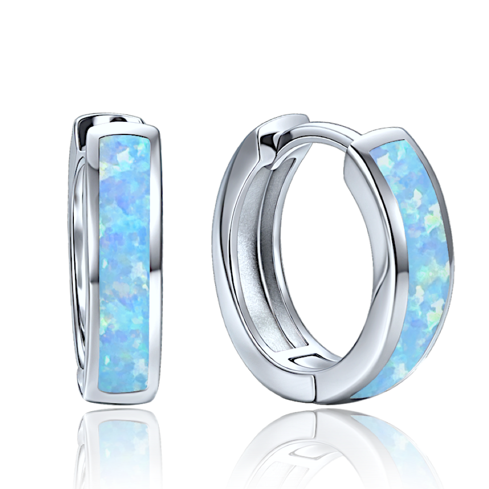 MINET Eleganckie srebrne kolczyki z niebieskim opalem