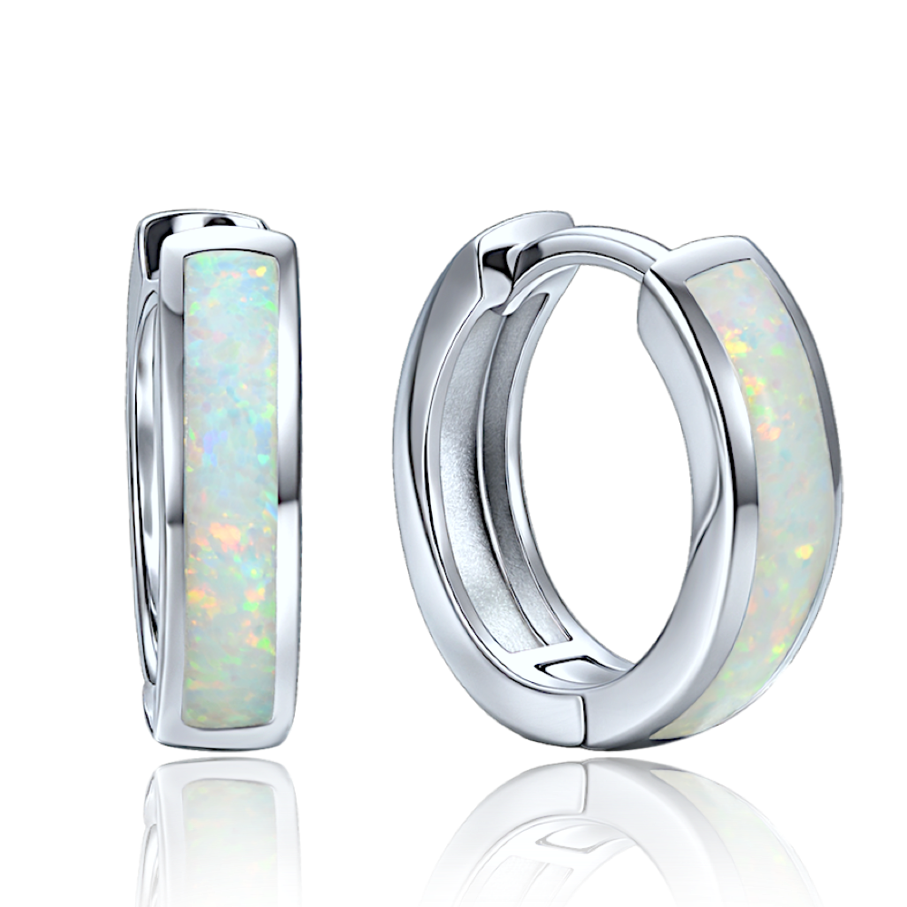 Eleganckie damskie kolczyki MINET ze srebra rodowanego Ag 925/1000 zdobi jasny opal.