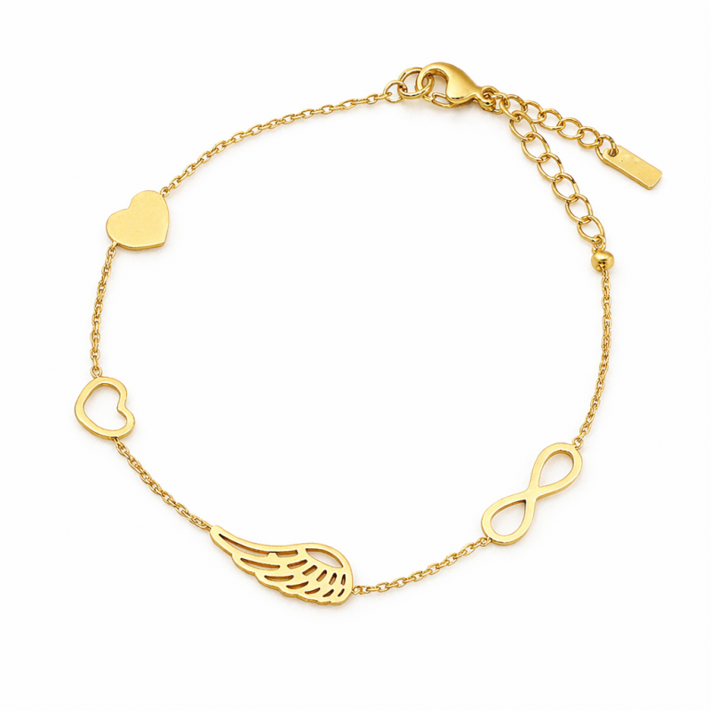 Modna bransoletka ze stali nierdzewnej platerowana 14 karatowym złotem Świetnie pasuje do eleganckich, jak również do codziennych stylizacji Elegancki dodatek na każdą