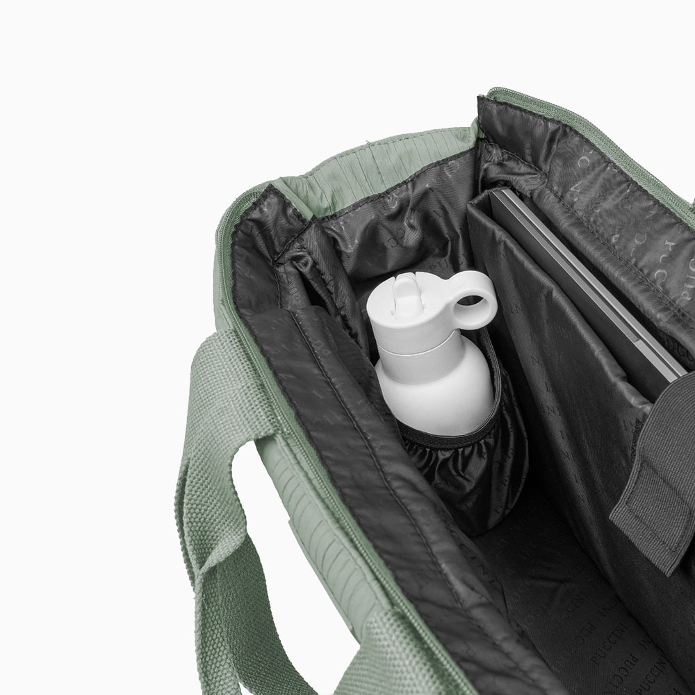 praktyczne kieszenie wewnętrzne, w tym kieszeń na suwak i dwie boczne na gumkach