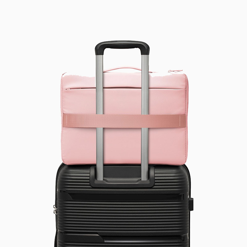 Etui wyposażono również w praktyczny pas do zamocowania na stelażu walizki oraz wygodny uchwyt do noszenia w dłoni, co czyni je idealnym wyborem dla osób często podróżujących.