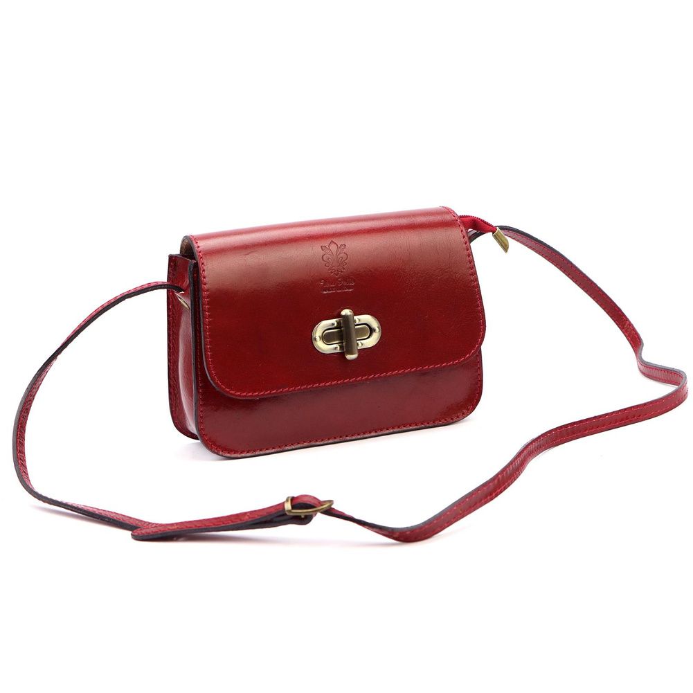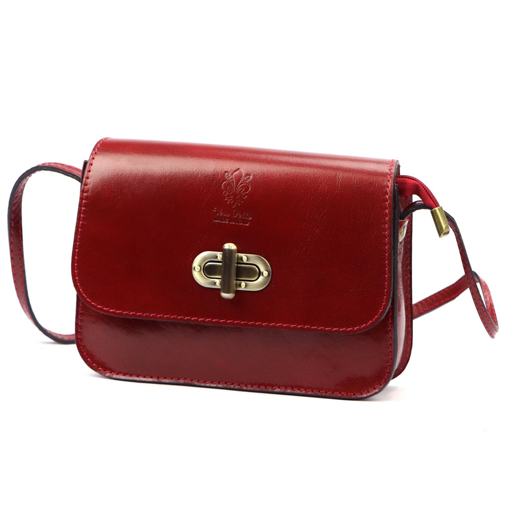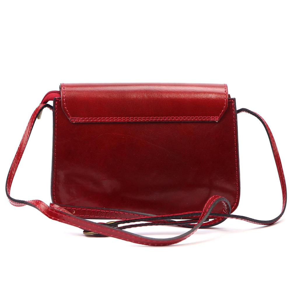 Nieduża torebka-listonoszka z naturalnej, włoskiej skóry licowej. Torebka ma budowę jednokomorową, wyposażoną w malutką kieszonkę. Całość zamykana jest zamkiem błyskawicznym i klapą z ozdobną "przekrętką". Długi pasek pozwala wygodnie nosić ją na ramieniu lub na ukos przez pierś.