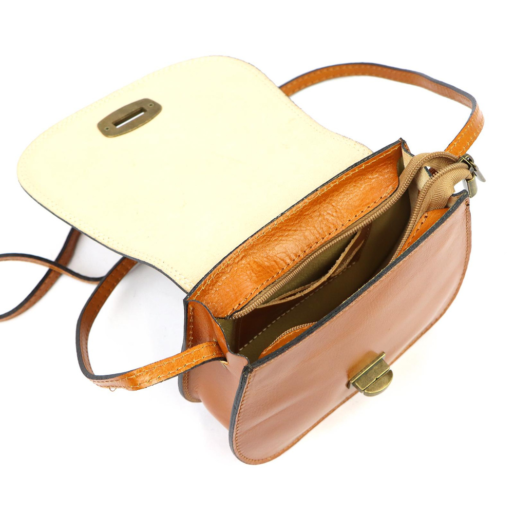 Nieduża torebka listonoszka, przeznaczona do noszenia na ramieniu lub na ukos przez pierś. Wykonana jest z najwyższej jakości, włoskiej, naturalnej skóry licowej. Konstrukcja torebki jest jednokomorowa i stanowi usztywniony kuferek. We wnętrzu znajdziemy kieszeń na drobiazgi, zapinaną na suwak. Całość zamykana jest klapą z tradycyjną "przekrętką".