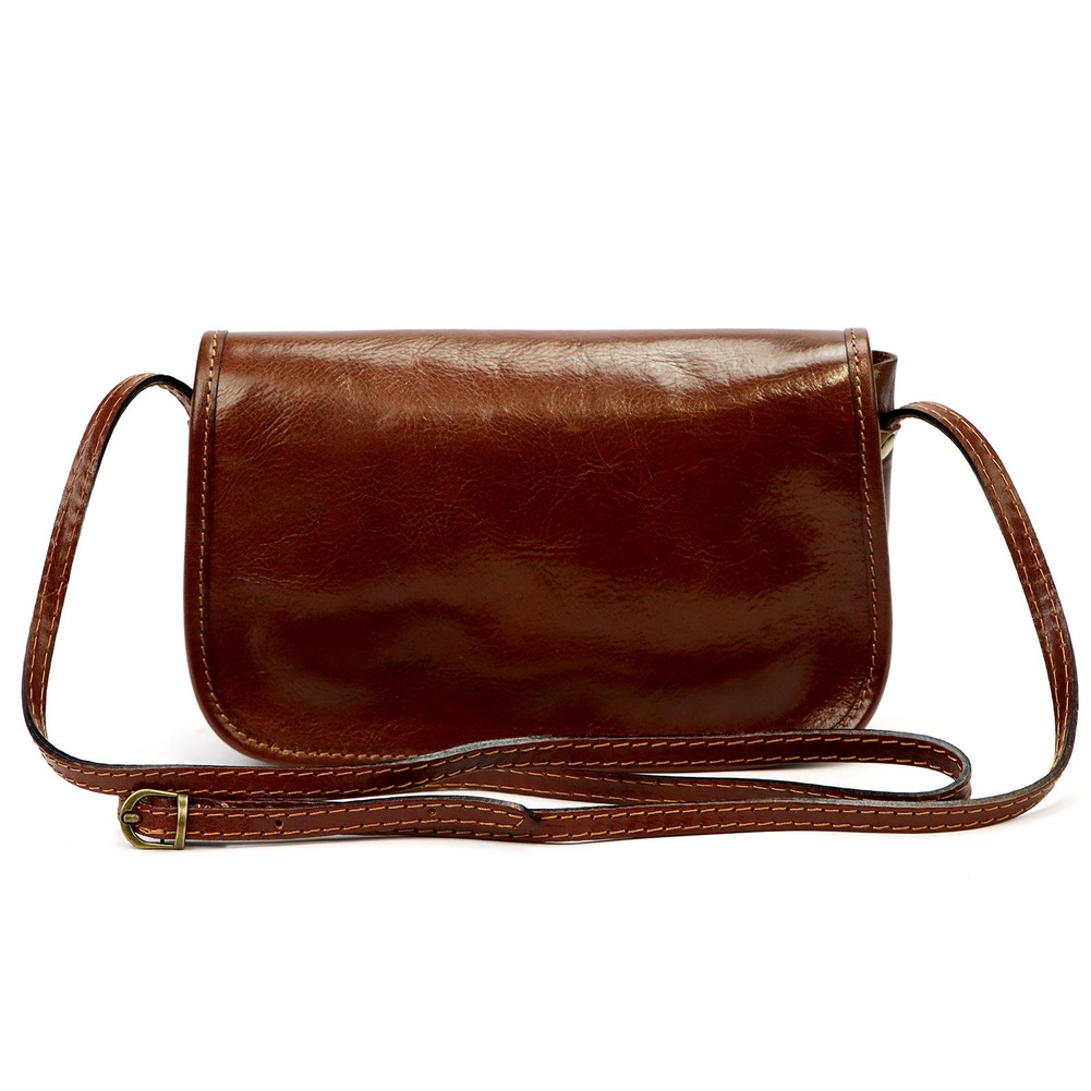 Malutka torebka listonoszka, przeznaczona do noszenia na ramieniu lub na ukos przez pierś. Wykonana jest z najwyższej jakości, włoskiej, naturalnej skóry licowej. Konstrukcja torebki jest jednokomorowa i stanowi usztywniony kuferek. Wewnątrz wszyto kieszeń na drobiazgi, zapinaną na suwak. Całość zamykana jest klapą z zatrzaskiem magnetycznym.